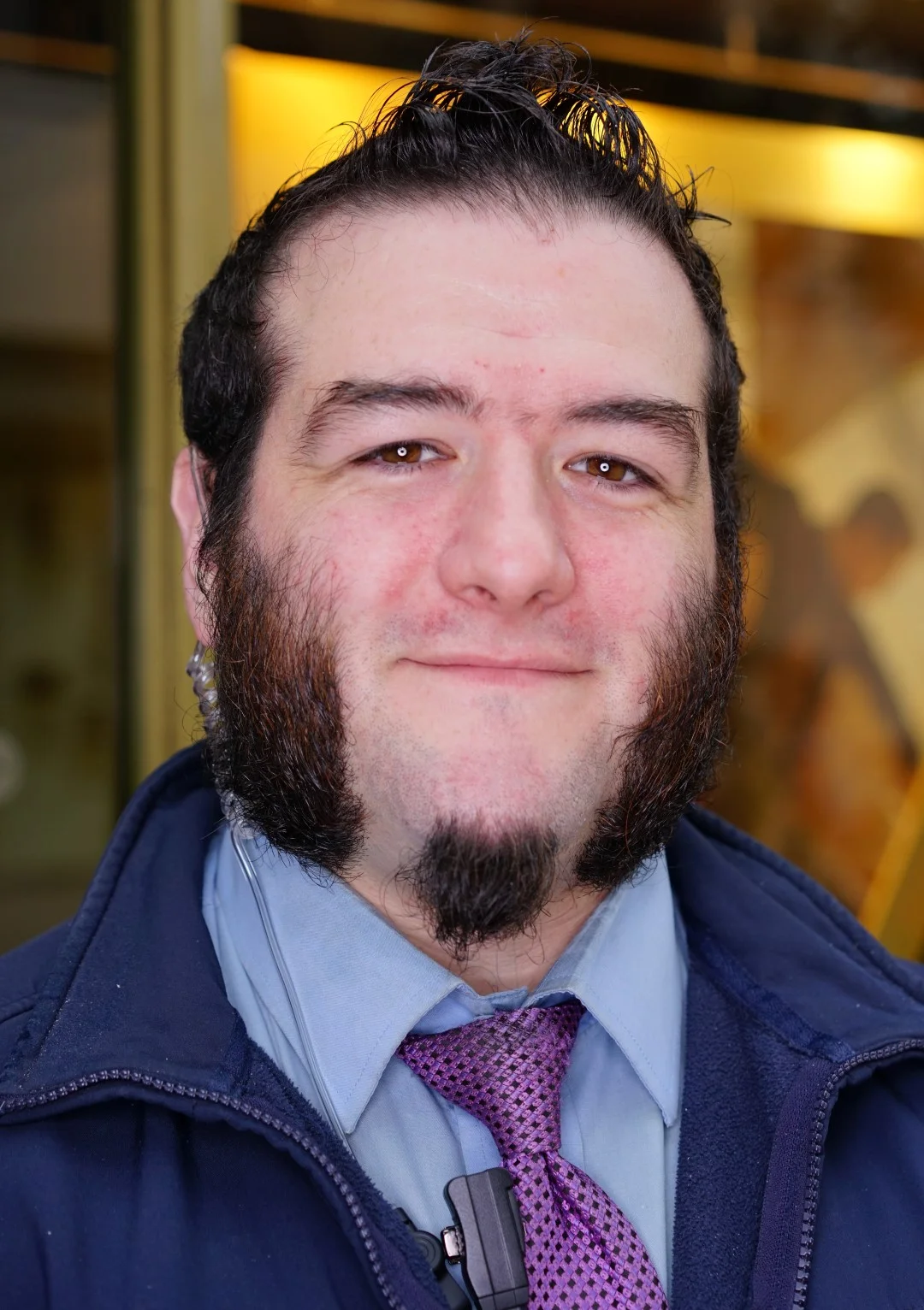A Security Guard with cool mutton chops, at a dance event in Belfast